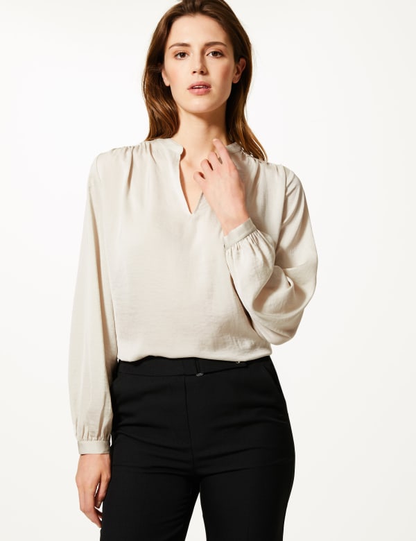 Fapizi Women Blouse Women Summer Fold Casual Chiffon Long Sleeve Shirt Tops Blouse