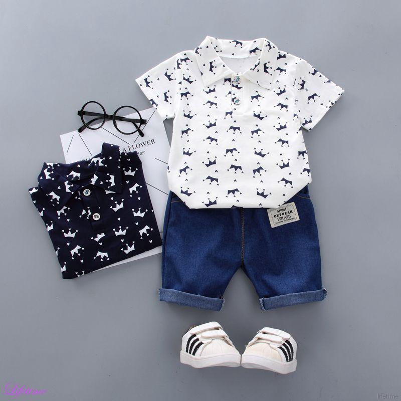 Fashion Baby Boys Summer Solid Color Printing Shirt Pants Set Kids Outfits