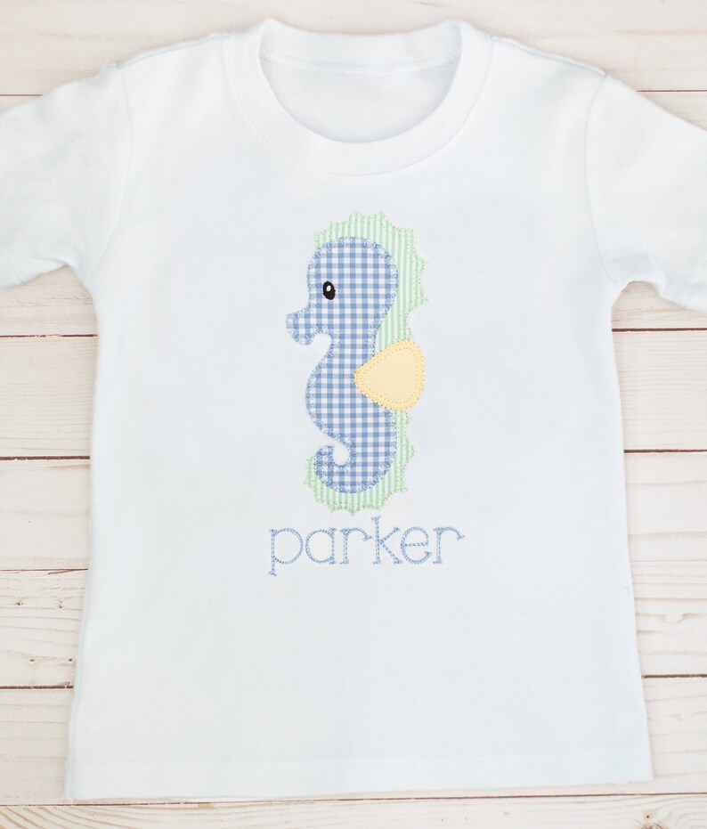 Seahorse Applique Boys Shirt Beach Outfit Summer Set For Baby Boy Beach Vacation Outfit Toddler Boy Ocean Theme Under The Sea Embroidery