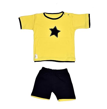 Babywish Baby Boys Unisex Clothes Star Applique Design Summer Causal Party Dress Wear T Shirt Tops And Shorts Pants Outfits Dual Color Combo 100