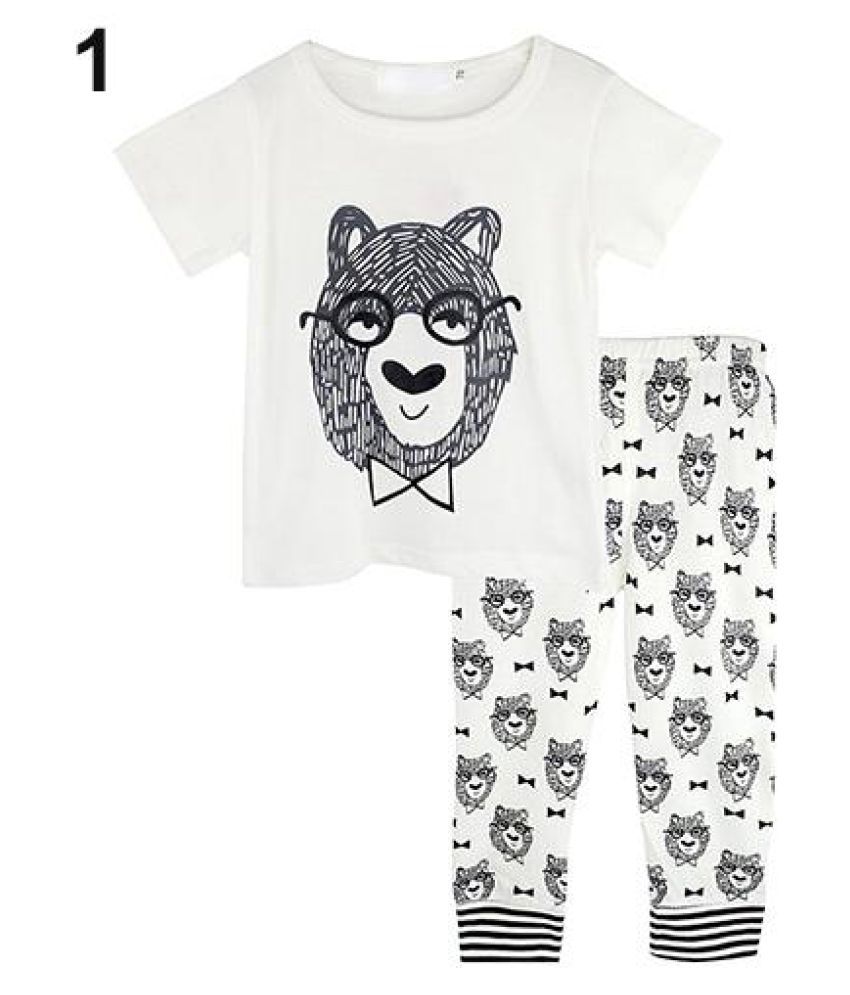 Baby Boy Summer Cartoon Pattern Printed Cotton T Shirt Long Pants Clothing Suit