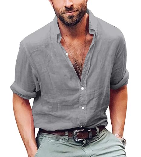 Details About Mens 2nd Chapter Linen Long Sleeve Collared Summer Cotton Button Up Shirt