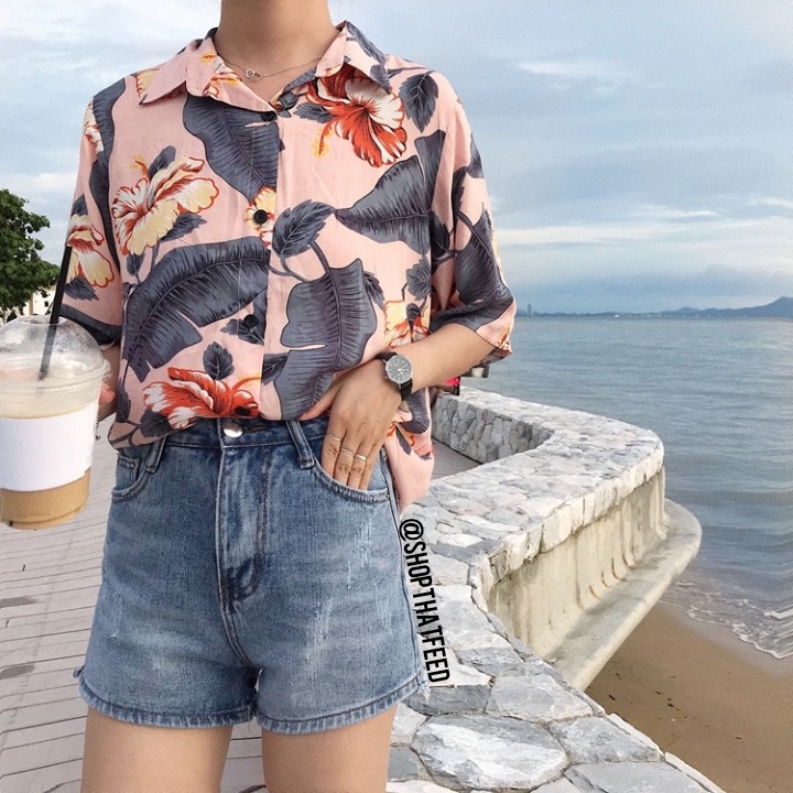 Vintage Patterned Oversized Light Summer Button Up Shirt