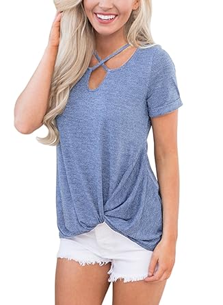 Dokotoo Womens Summer Casual Short Sleeve Floral Knot Blouse Tops And T Shirts