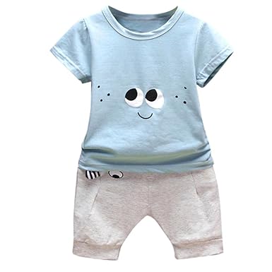 Euone Baby Outfit Summer Shirts 0 2 Years Old Boys Cartoon Eyes Tops Shorts Pants Summer Clothes