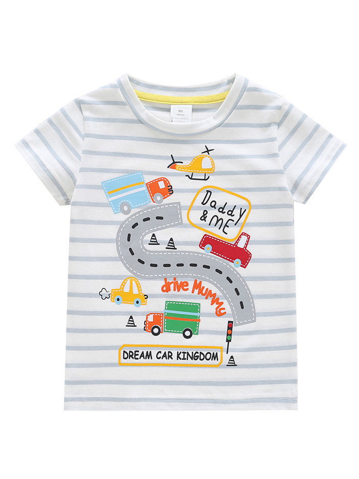 Summer Daddy Me Cartoon Car Striped Baby Toddler Boys Short Sleeved T Shirt Wholesale