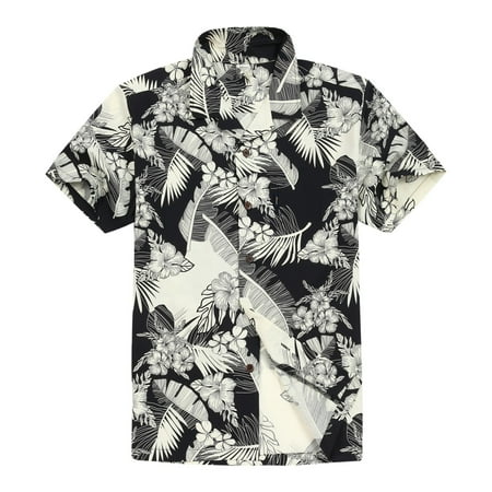 Men S Hawaiian Shirt Aloha Shirt L Summer Day Leaves And Flowers In Black
