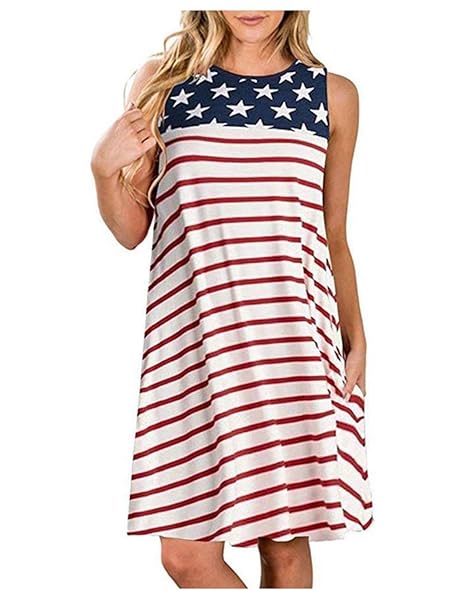 Lioder Women Summer Sleeveless Printed Pocket Loose T Shirt Dress