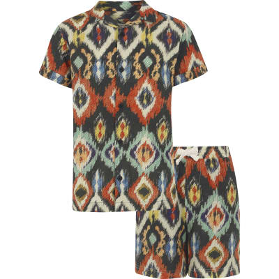 New Design Boys Summer Shirt And Shorts Two Piece Suit Orange