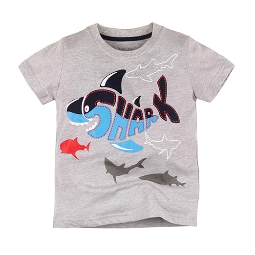 Toddler Boys Dinosaur Shark Print T Shirt Kids Cotton Summer Short Sleeve Tee Shirts 2 7 Years